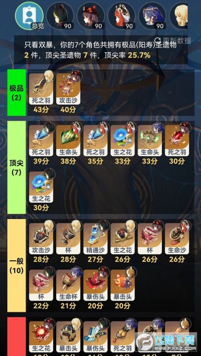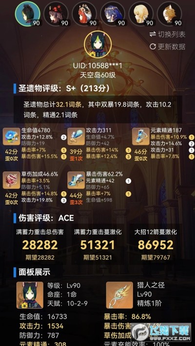 2、然后从上方的角色圣遗物榜切换到伤害榜,点击顶部的名称可以选择不同的角色进行查看。
