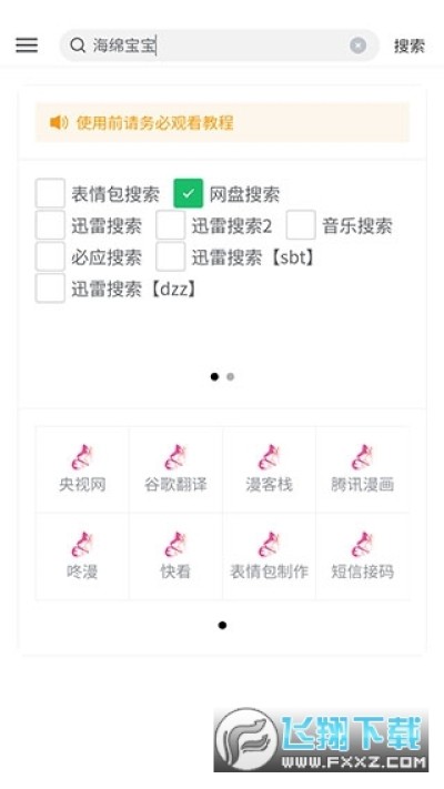 2、在搜索之前需要勾选相应的资源分类,比如网盘资源,之后输入关键词