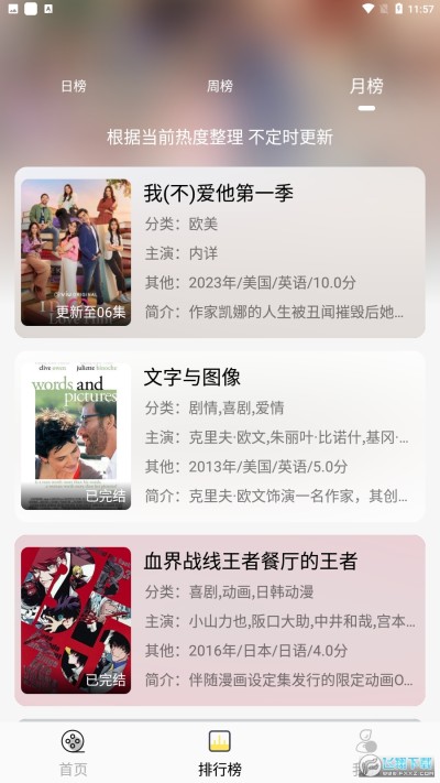 5.另外我们还可以在排行板块查看各种榜单,让自己可以从榜单里找到自己感兴趣的视频内容进行追剧