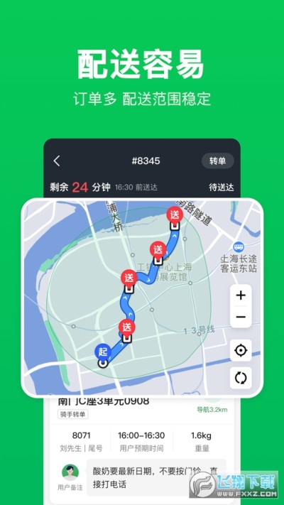 路线规划导航:具有智能的路线规划导航功能。骑手能够根据导航的指引,选择最优化的配送路径,节省时间和精力。