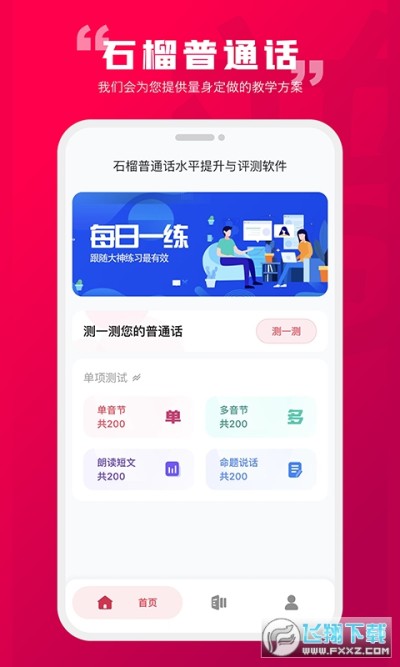 石榴普通话app是一款依照2024新纲普通话的测试练习软件,软件中用户可以在线进行普通话考试练习操作,最新最全的全真模拟题,随时都能测试你的学习成果,对软件感兴趣的话不妨点击下载试试!