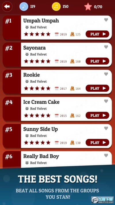 KPOP Tiles Deluxe钢琴块是一款非常好玩的音乐游戏,玩起来就跟曾经风靡一时的别踩白块儿一样,玩家们可以在这里体验多关卡多音乐的游戏内容,跟随着音乐的节奏进行闯关,找准合适的时机,各种音乐应有尽有,各种难度随你选择,顺利的通过当前的曲目关卡。