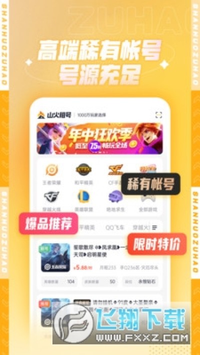 山火租号安卓租号平台app极速版是一款可以在线租号或者进行账号交易的软件,软件中用户可以筛选自己感兴趣的游戏账号,官方正规平台推荐,游戏号源有保障,对软件感兴趣的话不妨点击下载试试吧!