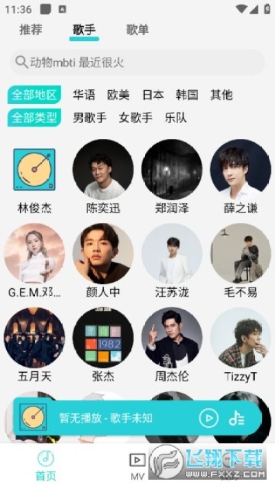 4、提供经典歌单,包括华语、欧美和日韩等多种风格的歌曲分类列表。