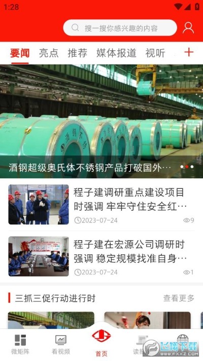 新酒钢app是一款酒泉集团最新推出的手机新闻资讯客户端软件,软件中有着海量的分类栏目等你浏览,还可以搜索关键词进行快捷查询,软件操作简单易上手,还可以随时看视频直播,对软件感兴趣的话不妨点击下载试试吧!