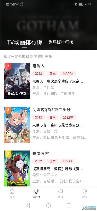3、多样动漫番剧排行榜,想看什么看什么;