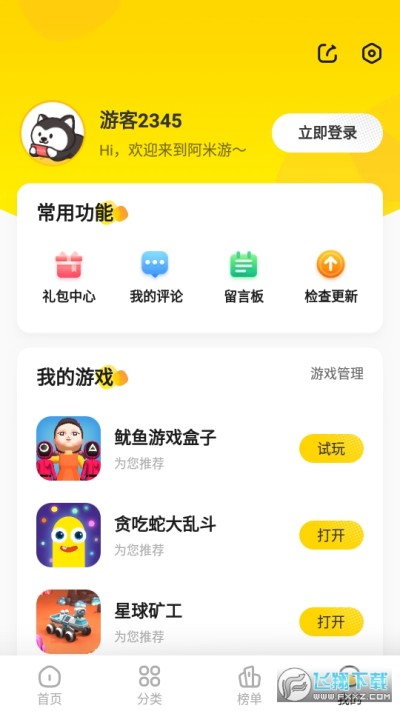 阿米游盒子最新版是一款非常不错的手游盒子应用软件,使用起来非常的方便,内含丰富的游戏资源,玩家可以轻松的获取各种游戏福利,不肝不氪免费赚装备!平台内的小游戏免费在线更新,提供了各种新奇有趣的新玩法,轻松获得更多福利!摸鱼就上阿米游!