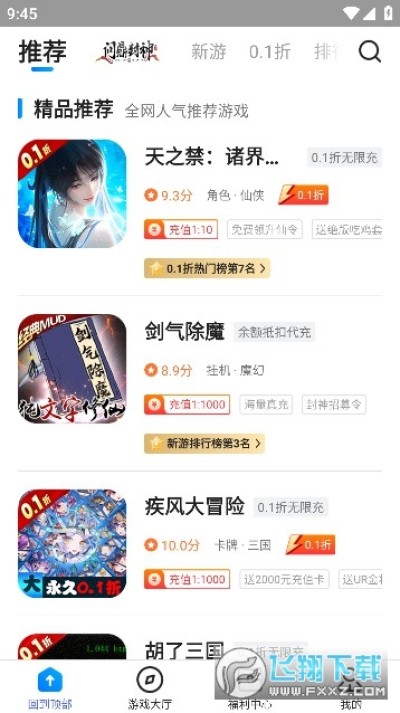 凌天众游手机app游戏盒子是一款有着海量游戏资源的软件平台,超多热门游戏资源免费下载试玩,平台还会推出不同的游戏活动等你参与,超低折扣价格享受,对软件感兴趣的话不妨点击下载试试!