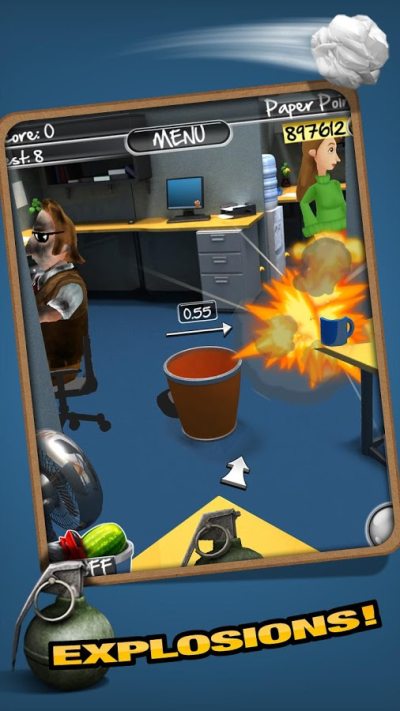 您在这款免费游戏中,要做的就是施展您的绝技,通过把揉皱的纸团巧妙地扔到办公室垃圾箱里或者用其它物品狠狠地投掷到您讨厌的同事身上来获取积分。