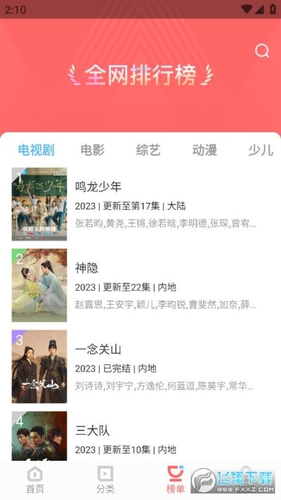 3、涵盖电影、电视剧、综艺、动漫等,内置各类热门的影视榜单。