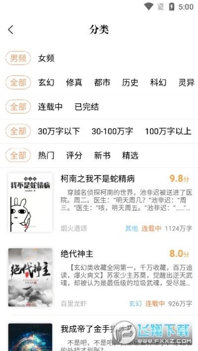 3、正版资源免费读,热门分类应有尽有,包括都市爽文、言情穿越、朱门宠妻、奇幻修仙等。