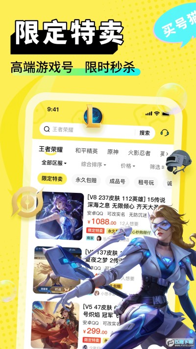 买号猫app是一款安卓手机账号交易软件,软件中用户可以在线进行游戏账号交易,支持海量的手机游戏类型,官方专业团队账号售出找回包赔,24小时专业客服在线为你进行答疑,对软件感兴趣的话不妨点击下载试试!