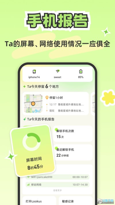 想为TA点夜宵但是不知道对方是否睡觉?全天手机使用情况都在这儿,轻松get对方手机屏幕使用情况!