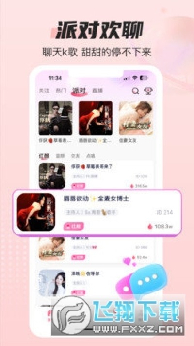多种类型聊天室,可以和多位小哥哥小姐姐同时进行语音聊天互动,如果一个人不够嗨,那么蓝鱼让一群人陪着你嗨!