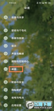 1、进入【设置】界面,往下滑动,找到【桌面】,点击打开。