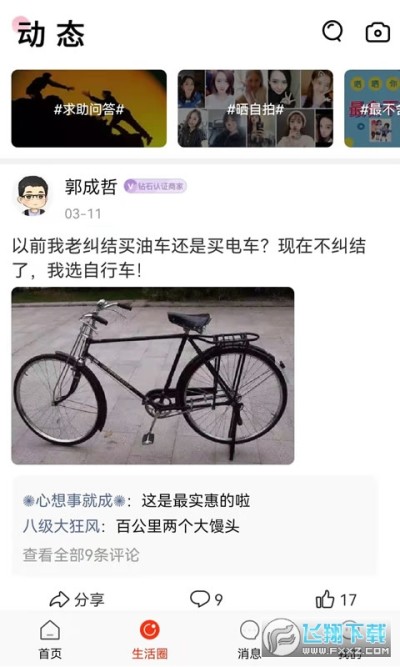 2、切换到【生活圈】页面之后,我们还能看到其他用户发表的各类生活动态,就像看朋友圈一样。