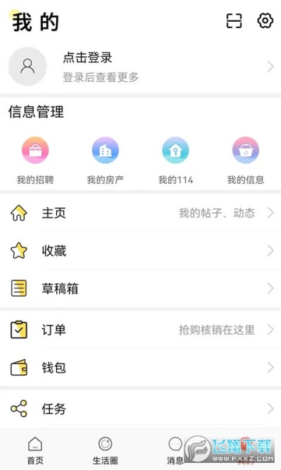 1、进入长兴岛生活网app软件后,找到【首页】,我们就能看到一些常用功能,如求职招聘、房屋租售、便民信息等。