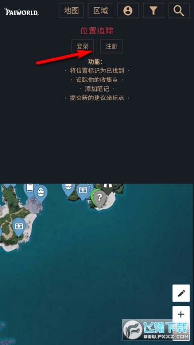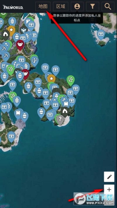 4.点击地图上面的图标,看到别人分享的攻略坐标。