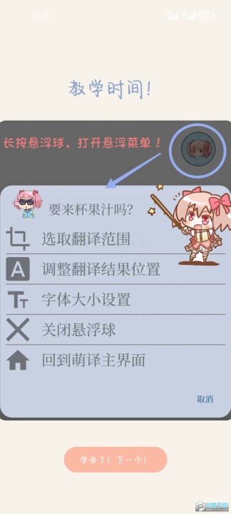 萌译app是一款安卓手机游戏翻译软件,软件中用户可以一键开启悬浮窗口进行翻译体验,支持英文、日语以及韩语等等多种语言自动翻译体验,使用起来非常方便,对软件感兴趣的话不妨点击下载试试!
