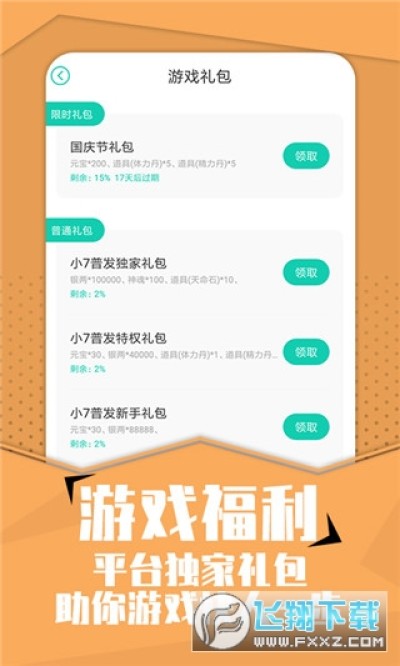 3、发现平台提供的游戏礼包以后,您就可以通过app快速的领取了;