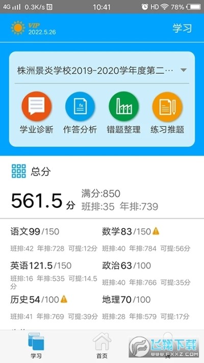 3、设置有学业诊断、作答分析、错题整理和学习推送的信息,在线学习提高学习成绩;