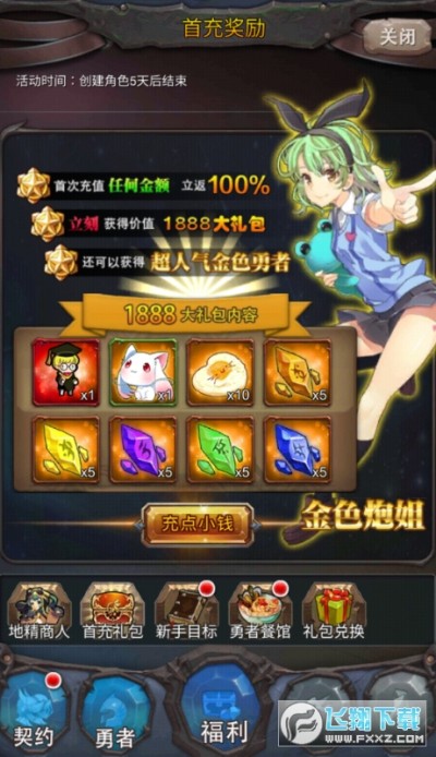 勇者大作战内置0.1折魔性挖矿变态版是一款卡通风放置玩法的rpg手游,游戏里玩家将扮演一支勇者小队的队长,召集自己的勇者小队打怪升级,游戏融入收集养成元素,游戏内多种副本等你挑战,数百种勇者角色等你收集,上线就可以领取丰厚的福利,还有海量的钻石金币领取,获取永久全场0.1折充值福利!