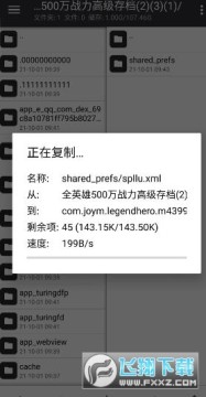 3.进入/data/user/0/com.joym.legendhero.m4399/的目录,复制粘贴你的存档,遇到替换选项点击替换即可。