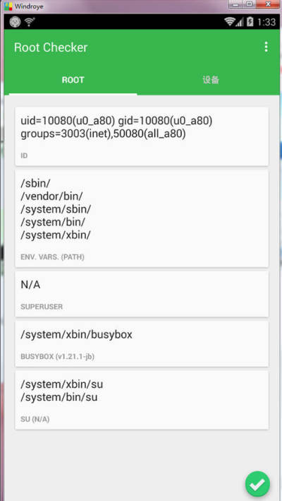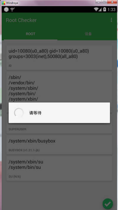 一款用于ROOT权限检查的简单程序,它能简单、快捷的验证ROOT权限。给你一个简单而快速的方法来检查你的手机是否“ROOT”成功。