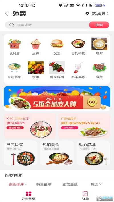 1、在此可以点外卖,可以交易二手货物,可以同城购物,找装修工师傅等等。