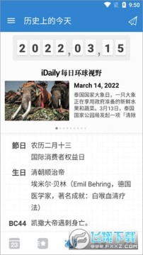 像诸多的日历类应用一样,有历史上的今天,历史上的明天这样一个界面,内容包括名人的生日,和全球发生的一些大事件。