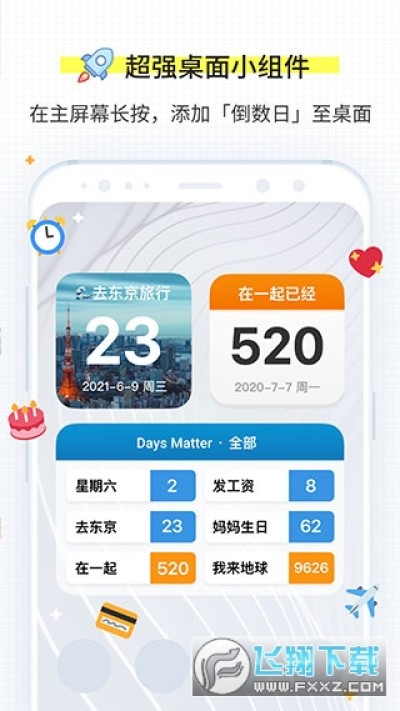 days matter下载2024最新版是一款实用的日期倒计时软件。通过它,你可以轻松了解距离重要日子的时间,如恋人的生日、宝宝的出生日、发工资的日子等。这款软件以直观的方式展示日期信息,让你清晰地看到距离记录的日期还有多远,或者已经过去了多久。