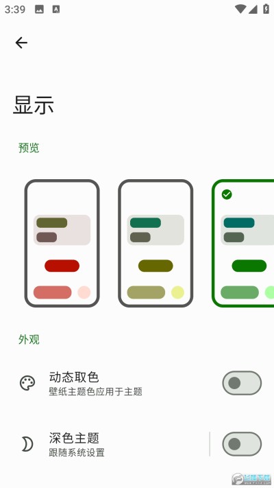 可供自定义选择主题色,支持深色模式,以及各类Material3配色,完全遵循material3规范,带来视觉上一一致体验,壁纸动态取色当然也不落下,且支持直接设置颜色并自动应用契合Material3规范的强调色。