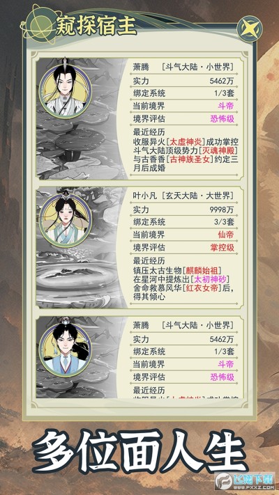 4、点击"寻找宿主"可以观测不同的位面,找寻合适的穿越者