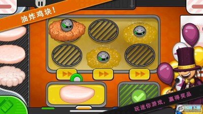 给鸡肉涂上各种面包屑和面糊选项,然后将鸡肉放入油炸锅中烹饪至完美!Papa Louie需要在竞争中获得优势,所以随着时间的推移,他可能会开始引入除鸡肉以外的其他食物来炸!