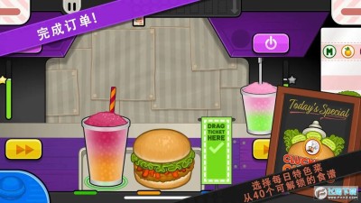 1、动感纷呈的美式漫画卡通风格呈现,门类齐全的汉堡包制作攻击任你自由使用。
