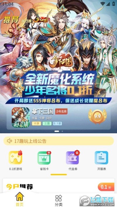 17趣玩手游app国内专业BT福利手游平台,为玩家提供BT游戏、满级VIP、免费首充!登录之后可以领取省钱卡,许多试玩的任务可以体验,精品大作的游戏都可以一一尝试!