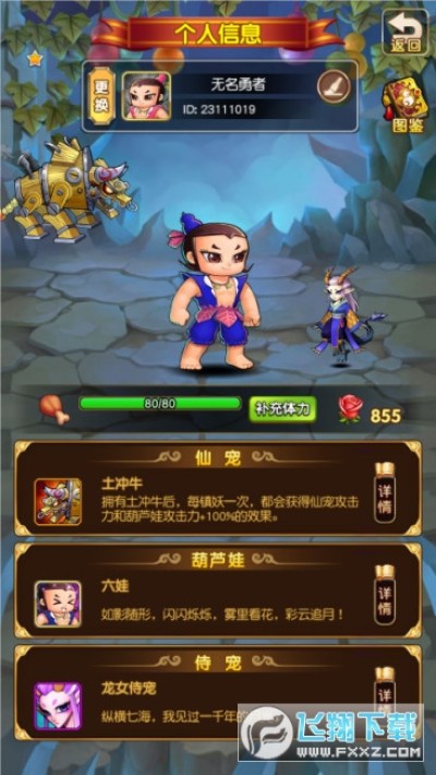 《新葫芦娃》——这是一款全新类型的放置手游,将告别传统卡牌游戏的单调战斗。你可以轻松挂机获取海量经验,也可以随时点击屏幕参与刺激的战斗。你的手速将决定你的伤害,而收服各路“小妖精”并让它们为你所用,建造仙洞守护资源,挑战无尽征途,这一切都展现出真正的游戏技巧!