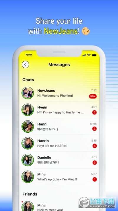 phoning安卓最新版本是一款专为newjeans粉丝打造的社交软件,可以了解女团的最新动态,在线互动,一键分享,认识更多小伙伴,还有超多明星周边商品可供用户们进行挑选,可以让自己的社交圈变得更大,为你喜欢的人物进行应援,可以和来自世界各地的朋友聊天。