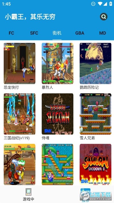 fc街机游戏厅手机版是一款简约好用的优质模拟器软件。在fc街机游戏厅找到超多怀旧的街机游戏,这款软件主要在模拟街机场景,这里有大量的经典街机游戏,全部都是童年经典的游戏,海量FC、SFC、街机、GBA等类型游戏都有,可以很好的满足于不同用户的需求。