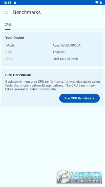 2、点击“RUN CPU BENCHMARK”即可开始跑分,等待手机进行跑分。