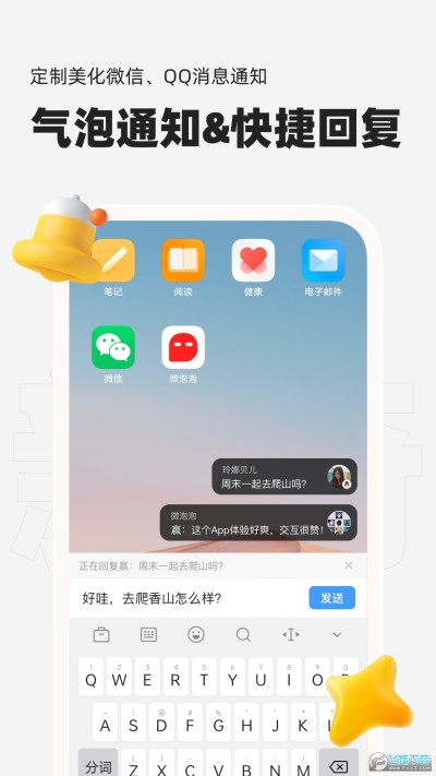 给微泡泡好友发消息,就可以霸占TA的手机屏幕。