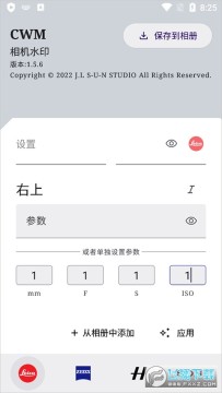 2、拥有多种相机水印类型,包括时间、日期、签名、LOGO等,齐全满足您的需求。
