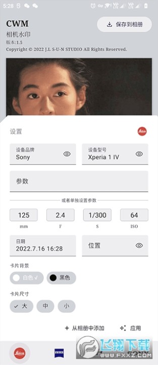 【CWM徕卡相机水印纯净版】是一款精心为手机摄影发烧友量身打造的应用程序,旨在让你的手机拍摄的照片瞬间焕发徕卡相机的经典魅力。它会自动为你的照片添加徕卡相机的专属logo、机型和型号信息,让你的作品独具匠心。此外,这款应用体积小巧、运行流畅,是你手机摄影的不二之选,助你轻松捕捉生活的每一个精彩瞬间。