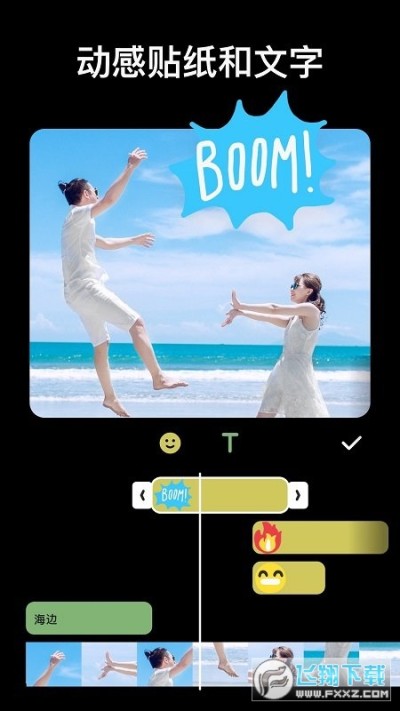 - 文字和贴纸时间轴功能,添加多个文字或贴纸到视频。定位同样非常方便