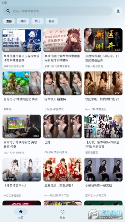 1、直播:在直播内容页面下,可以收听观看各类电台或者直播