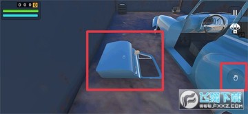 1、在游戏中玩家需要先将汽车上的所有零件装备在车上,点击手掌按钮拾取