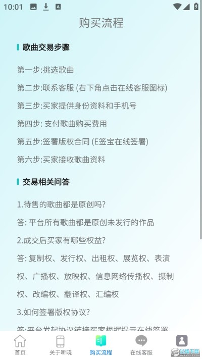 然后,联系在线客服,将歌曲名字提供给客服人员,并且发送自己的身份证等信息(签署版权合同),接着支付歌曲的费用到平台指定的账户;