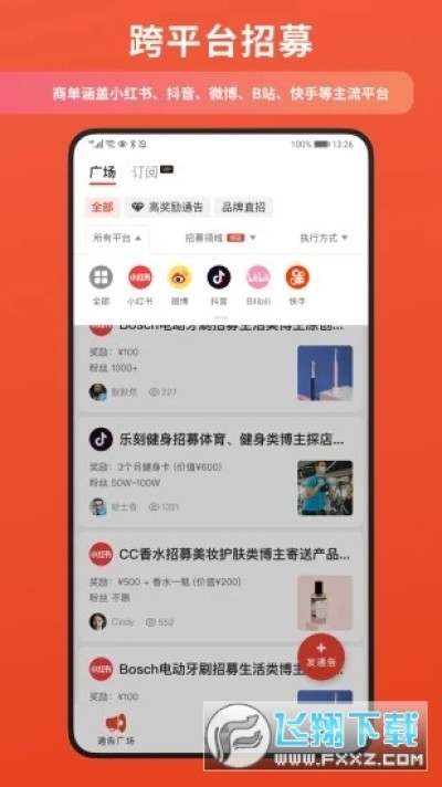 螃蟹通告app是一款自媒体推广营销软件,软件涵盖小红书、抖音、微博、快手等主流平台,用户可以自由浏览广场,找到自己需要的任务进行挑战,还能找到对应的博主进行合作,对软件感兴趣的话不妨点击下载试试!