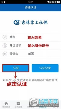 3、输入姓名和身份证号,并点击【认证】按钮,进入认证界面
