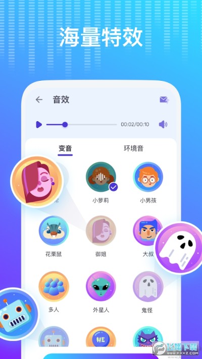 多种变声效果:提供小萝莉、御姐音、幽灵、机器人等多种有趣音效,自定义变音强度。